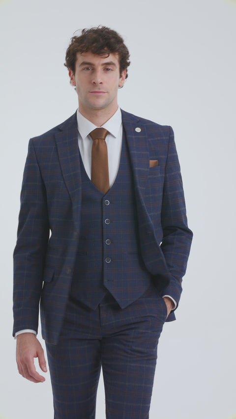 Meeste tumesinine ruuduline kolmeosaline ülikond - Paul Andrew Kenneth